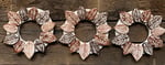 The Wreath is 9.5cm diameter. The leaves are big 3.7cm tall and 2.4cm wide, medium leaf 3cm tall and 2cm wide, and small 2.4cm tall and 1.5cm wide approx and are all attached to the wreath. There are 11 Leaves on the Wreath.
