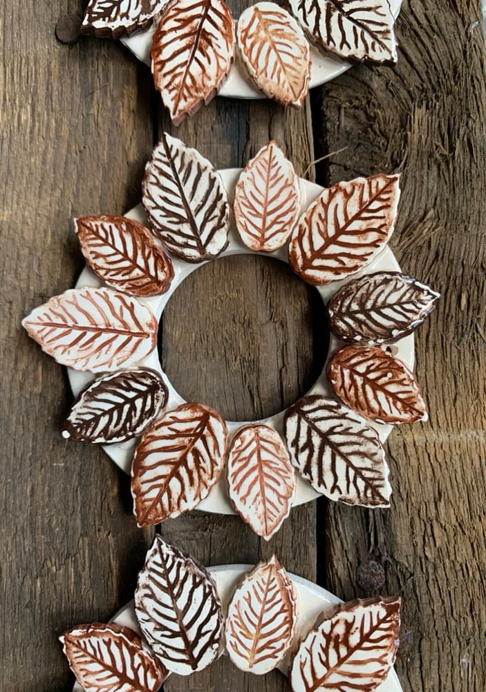 These leaves and wreath are handmade by me, if you look on my Instagram page you will see me making them, HandCraftedLove. I have attached some twine for you to use.