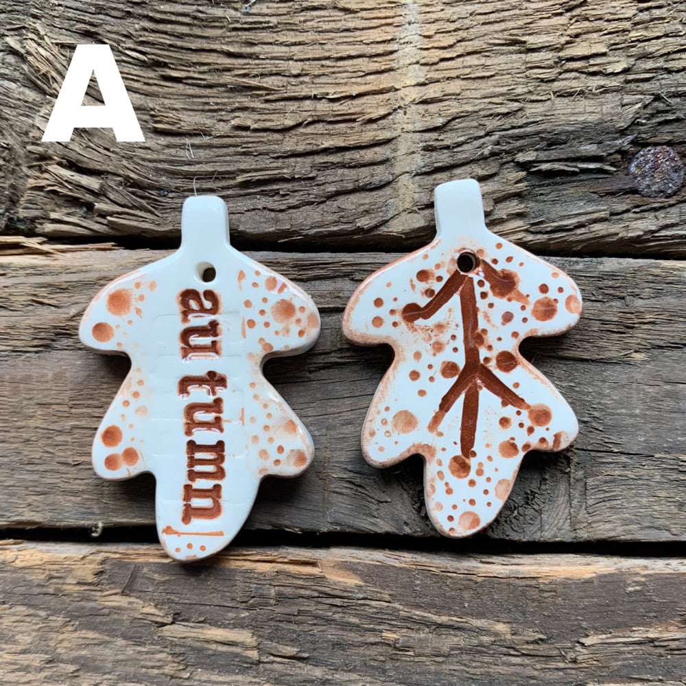 Autumn text leaf and a leaf. Set of 2. You get 1 leaf with the word 'autumn' on and 1 patterned leaf. Choose from either: