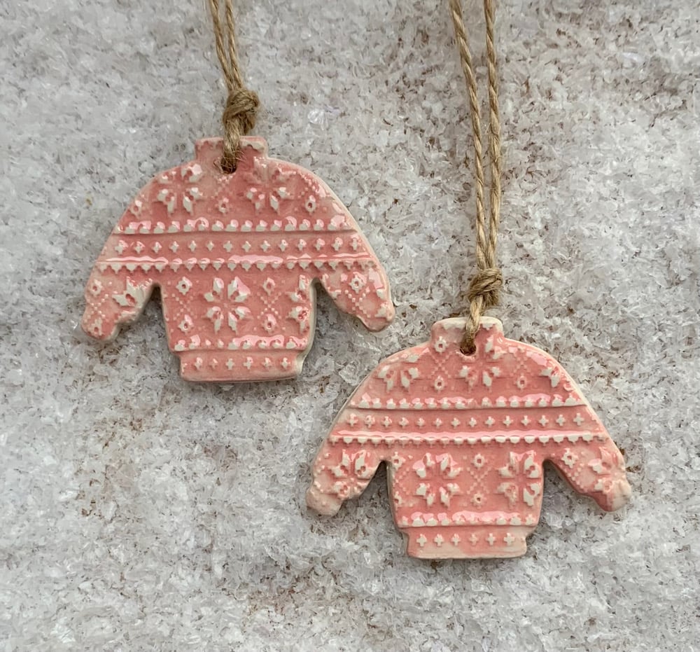 Handmade Ceramic Christmas Jumpers. Set of 2. Choose from either