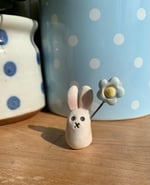 Ceramic Cute Bunny holding a pastel Flower