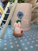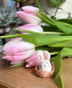 Ceramic Cute Pink Cheek Bunny in a basket.