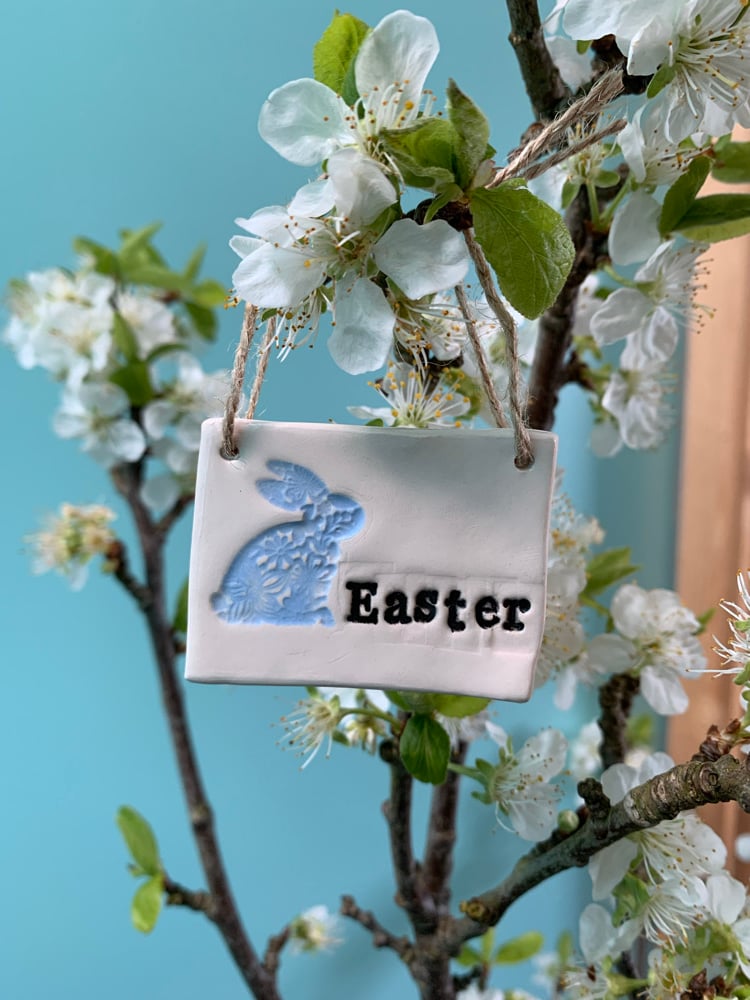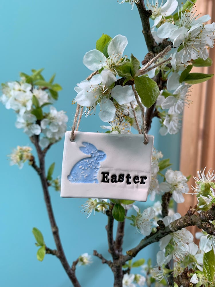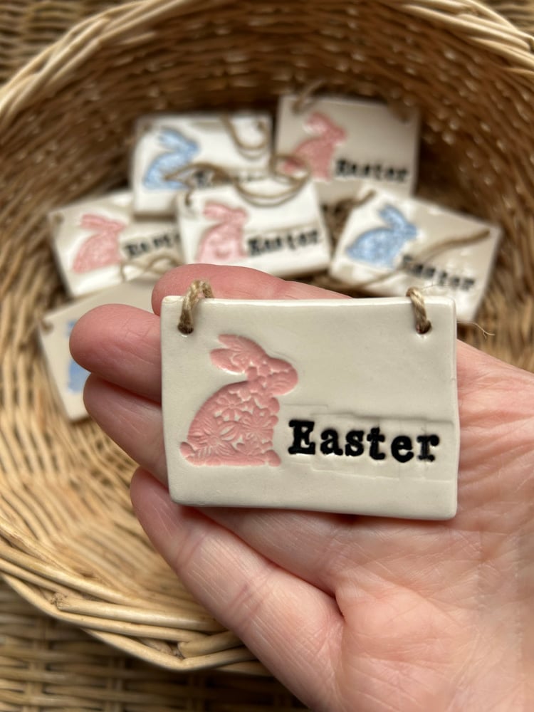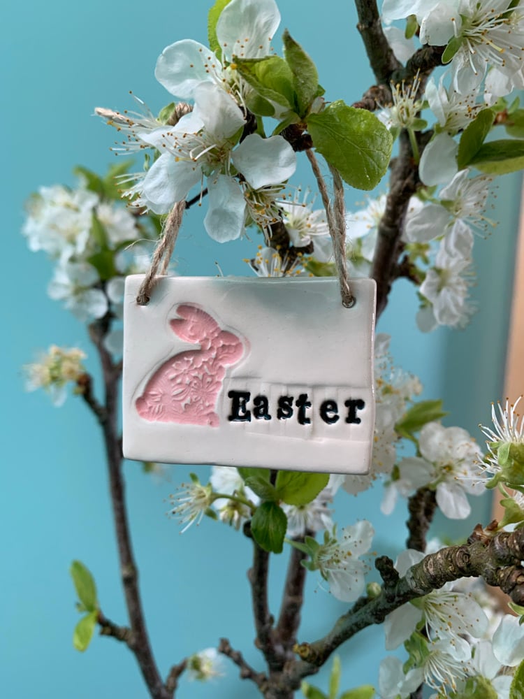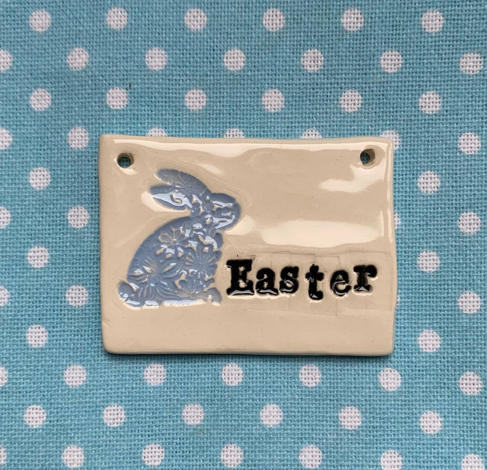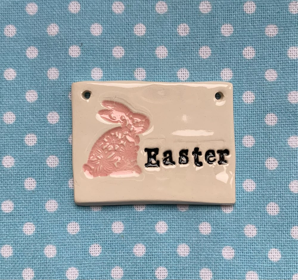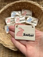 Handmade Ceramic Easter Tile with easter bunny decoration. Choose from either: