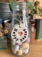 Ceramic Happy Easter Heart Motif Tag and 1 Heart tag