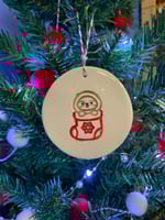 These Christmas Tags are handmade with white earthenware clay and shiny glaze. The Christmas tags are approx 7cm diameter. They have red and white Bakers twine attached.