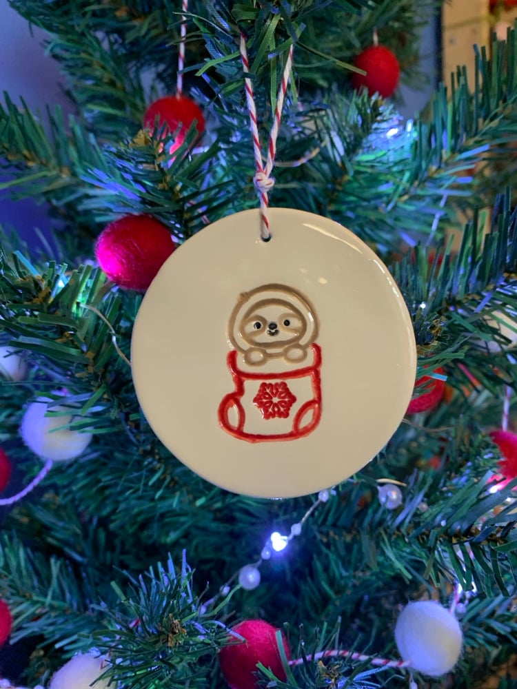 Ceramic Christmas Sloth decoration. This is for 1 Big Tag Decoration. Choose from: