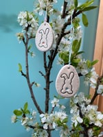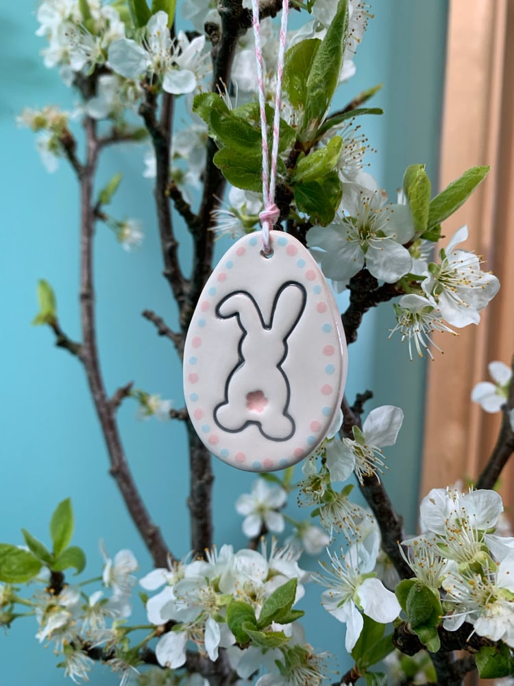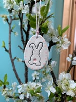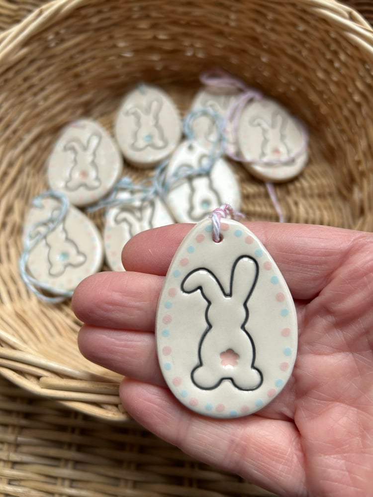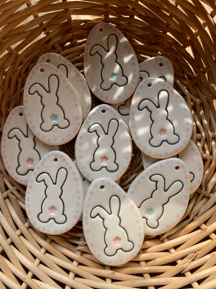 Handmade Ceramic Floppy Ear Bunny polka dot Egg shaped decoration. Choose from either: