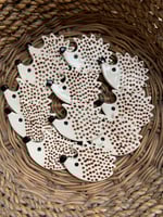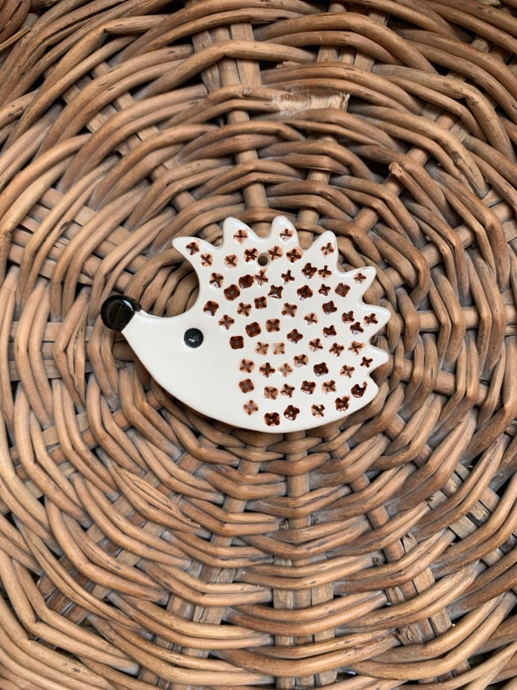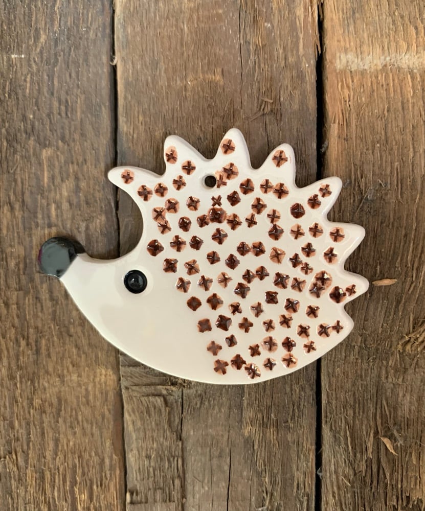 The Hedgehog is 6cm wide and 4.5cm tall. I have attached some twine for you to tie to use.