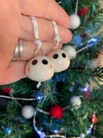 These little Snowballs are handmade with white earthenware clay and shiny glaze. The Snowballs are approx 2cm wide and 2.5cm tall.