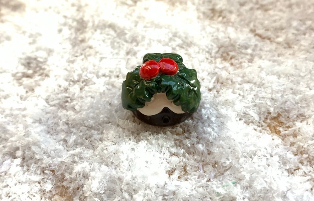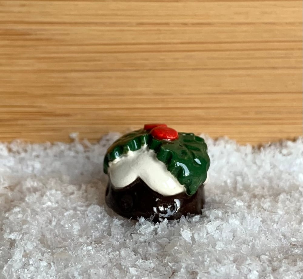 These little Christmas Puddings handmade with white earthenware clay and shiny glaze. The mini Puddings are approx 1.5cm tall and are 2cm wide. A cute decoration for a shelf, printers tray or even on top of your Christmas cake (just dont eat it as it will break your teeth!).