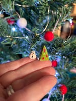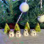 These teeny tiny Snowmen are handmade with white earthenware clay and shiny glaze. The Snowmen are approx 1cm tall and are 0.8cm wide. The Christmas Tree is approx 1.7cm tall and 1cm wide. I told you they were small but so so cute.