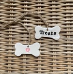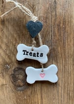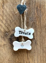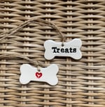 Hand made Ceramic Bone with the word 'Treats' Tag and a Heart Bone Tag. Set of 2 tags. Choose from either: