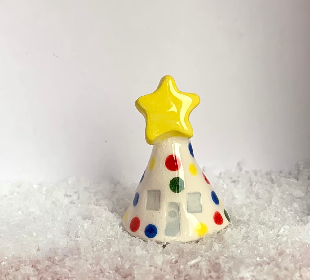 These Christmas Trees are handmade with white earthenware clay and shiny glaze. The Christmas Trees are approx 3.5cm tall and 2cm wide.